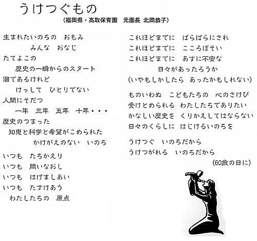 これからも、ますます感動を身につけられるすばらしい保育カレンダーに大きな期待を画きながら余生をより良くより深く過ごしてゆく所存です。どうか、このカレンダー製作に参加されたみなさんによろしくお伝え下さいますように。