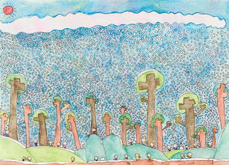この絵は、合宿中から描き始め、園に帰ってからも自ら時間をみつけて根気強く、10日間もかけて仕上げました。