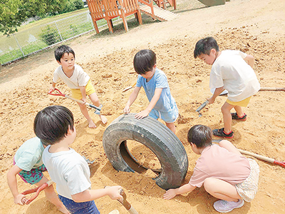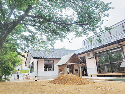 1952年にお寺の本堂を開放して保育を始めて70余年、全国保育実践交流連絡会に入会してから16年が経ちます。越前町は古くより和太鼓や陶芸が盛んな地域ですが、少子高齢化が進んでいます。町外からも園児が入園できるようにと2021年幼保連携型認定こども園になりました。
